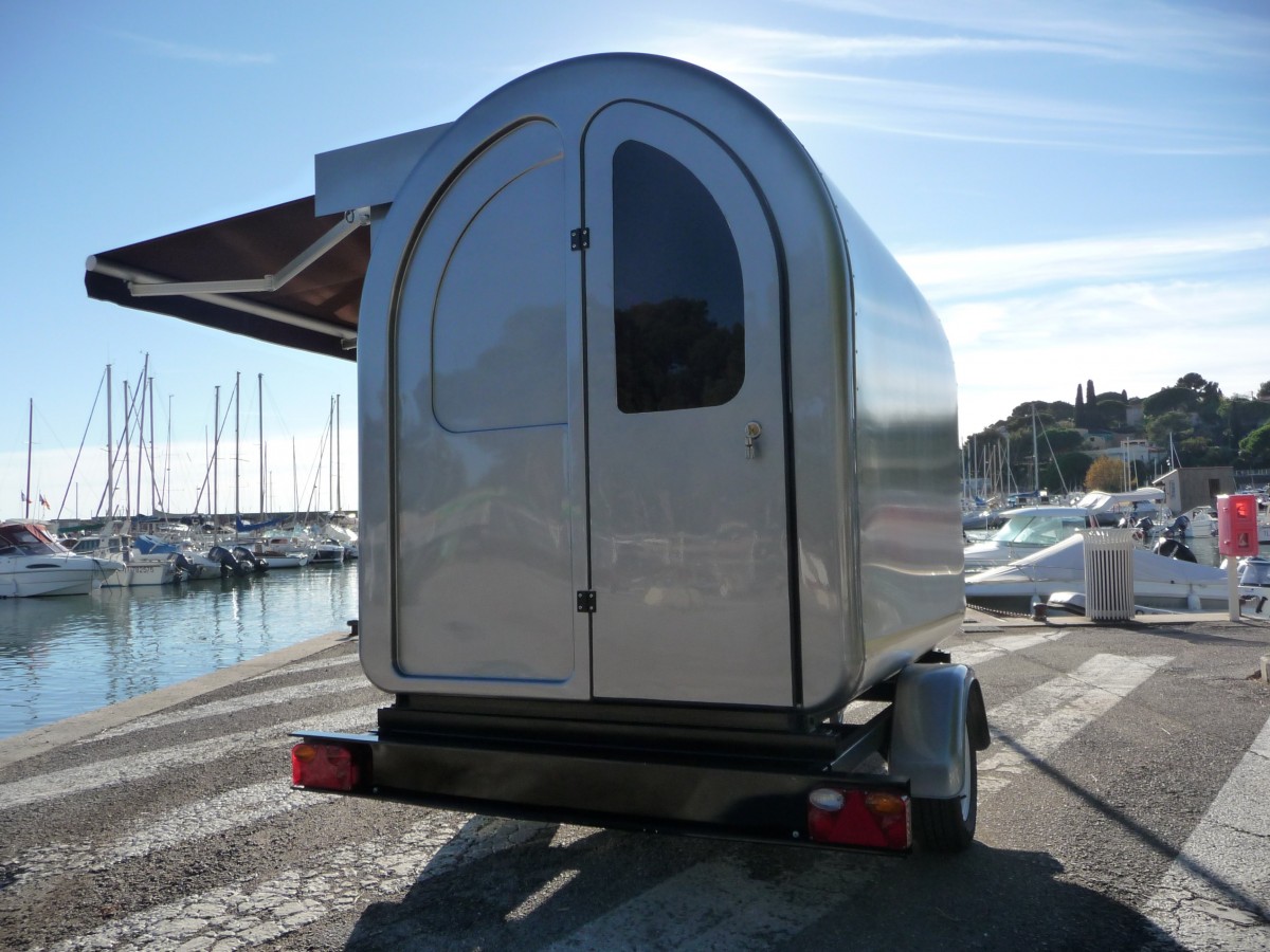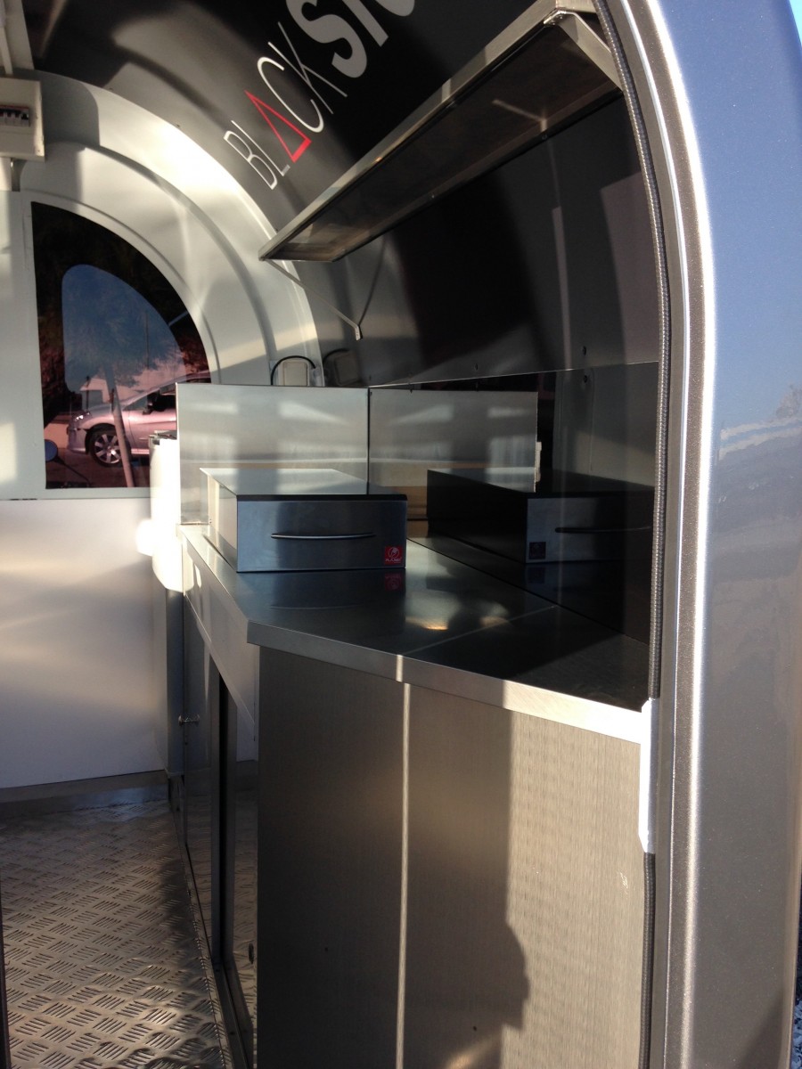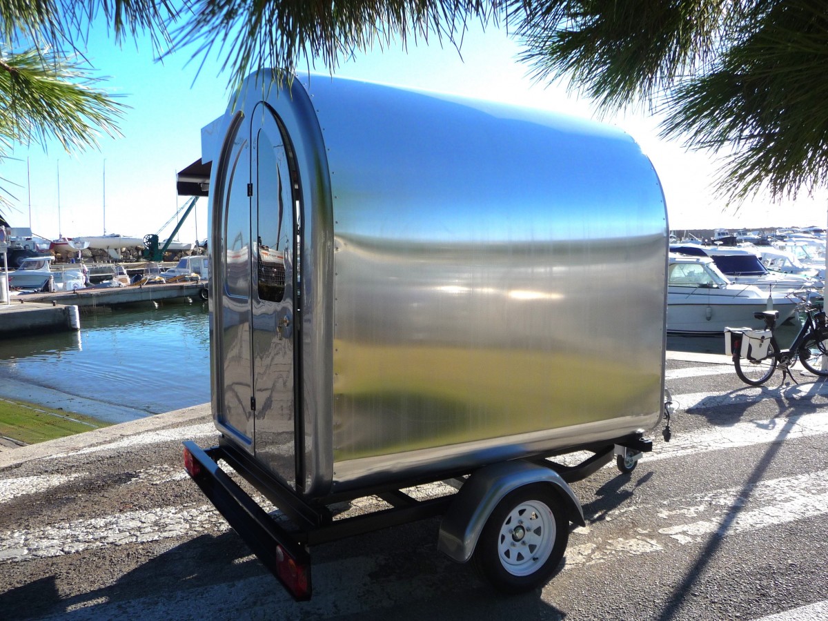 - Au niveau design, nous avons opté pour un recouvrement avec une place en acier inoxydable afin de rappeler l'ambiance des remorques Américaines de type air stream.