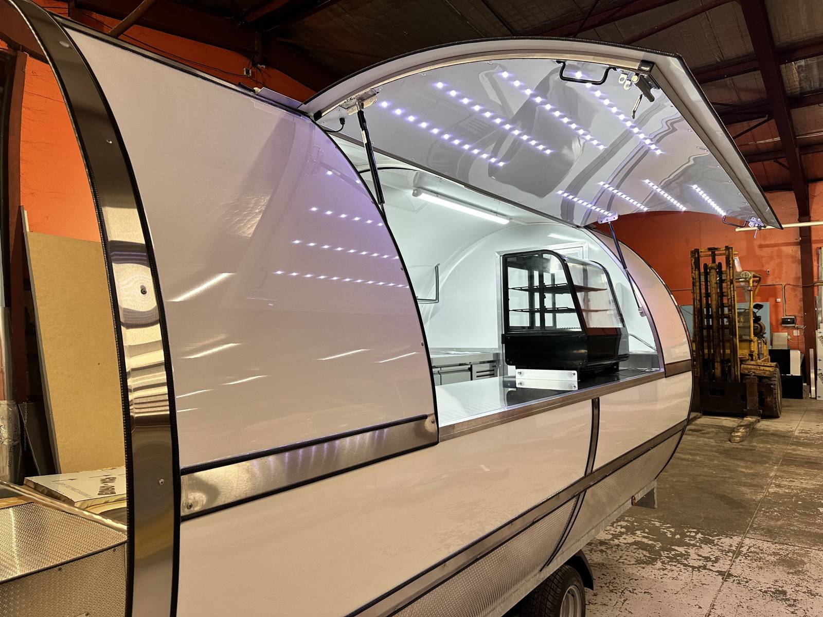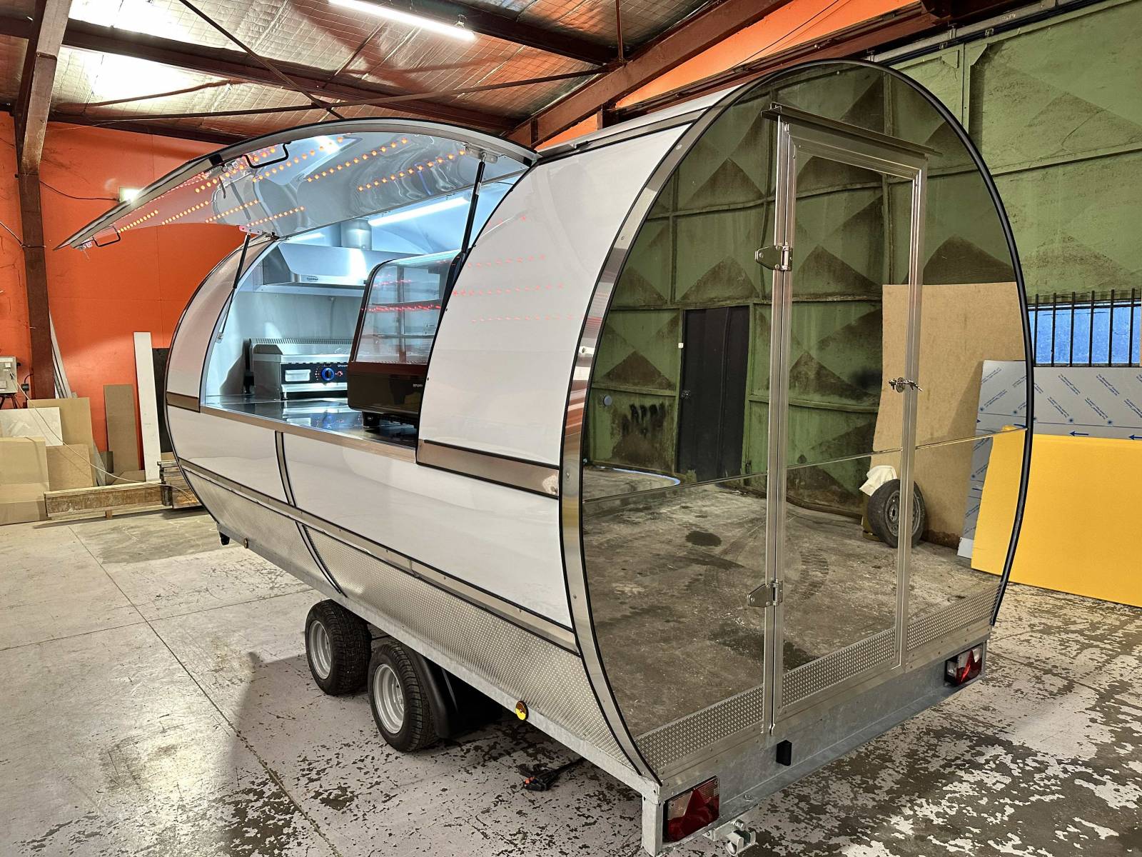 - Une adaptation et un aménagement sur-mesure selon l’activité (remorque snack, burger, crêpes, glace, friterie, sushis, cuisine du monde, boissons…)