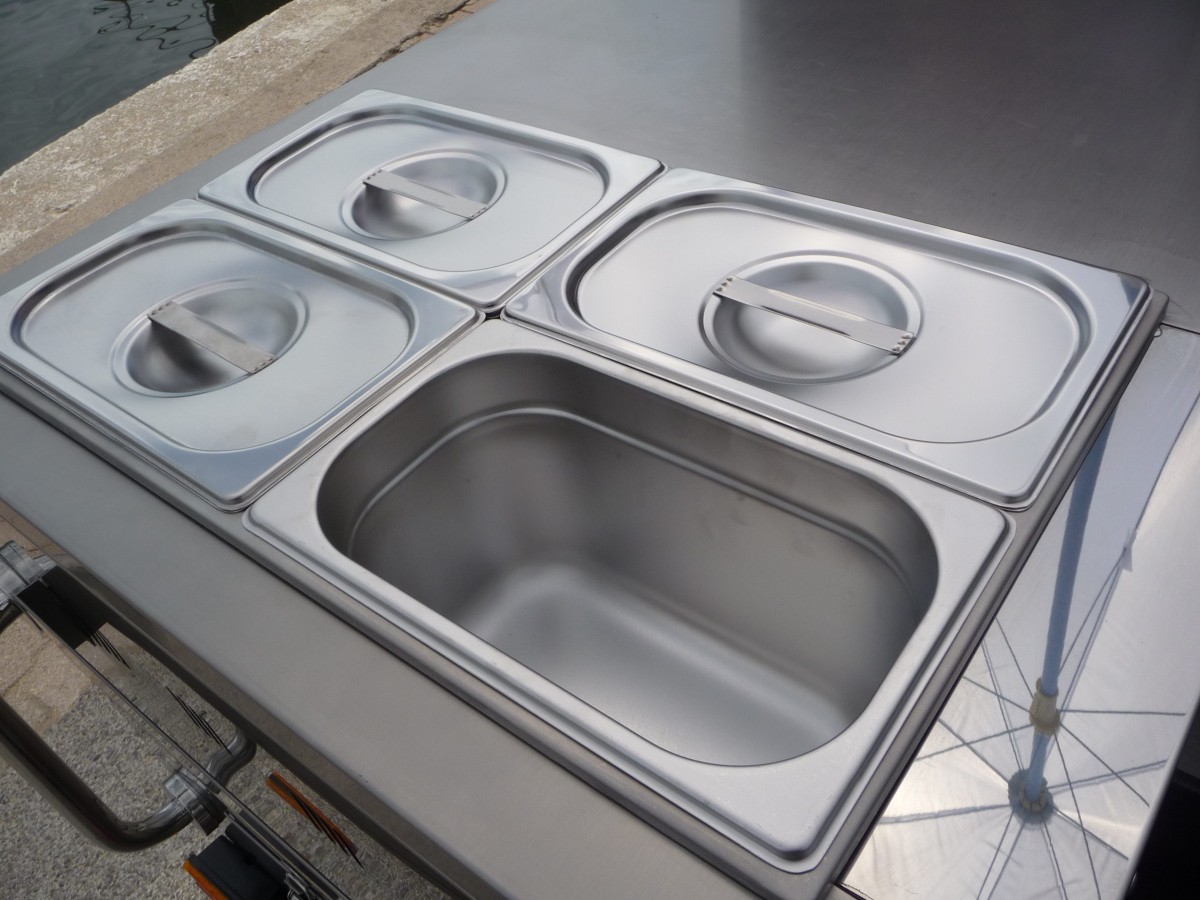 Les chariots ambulants Kiosque prime représentent une solution business destinée à la cuisine ambulante, vente ambulante, street food, street vending… Les chariots sont personnalisés en fonction de l'activité : Ice Cream roll, Snack, hotdog, burger, crêpe, gaufre, glace, café, boisson, viennoiserie, traiteur, cuisine du monde, churros, sandwich, salade, vente de produits en bocaux, vente en vrac, vente de produits divers... Ces chariots peuvent être utilisés en intérieur ou en extérieur (indoor et outdoor): terrasse, parc, parc d'attraction, rue, marché, salon, foire, event, Gms, camping, magasin… Tous nos chariots, stands et kiosque ambulant sont conçus selon vos besoins et votre cahier des charges. Tous les produits Kiosque prime sont modulables et peuvent être combinés les uns avec les autres.