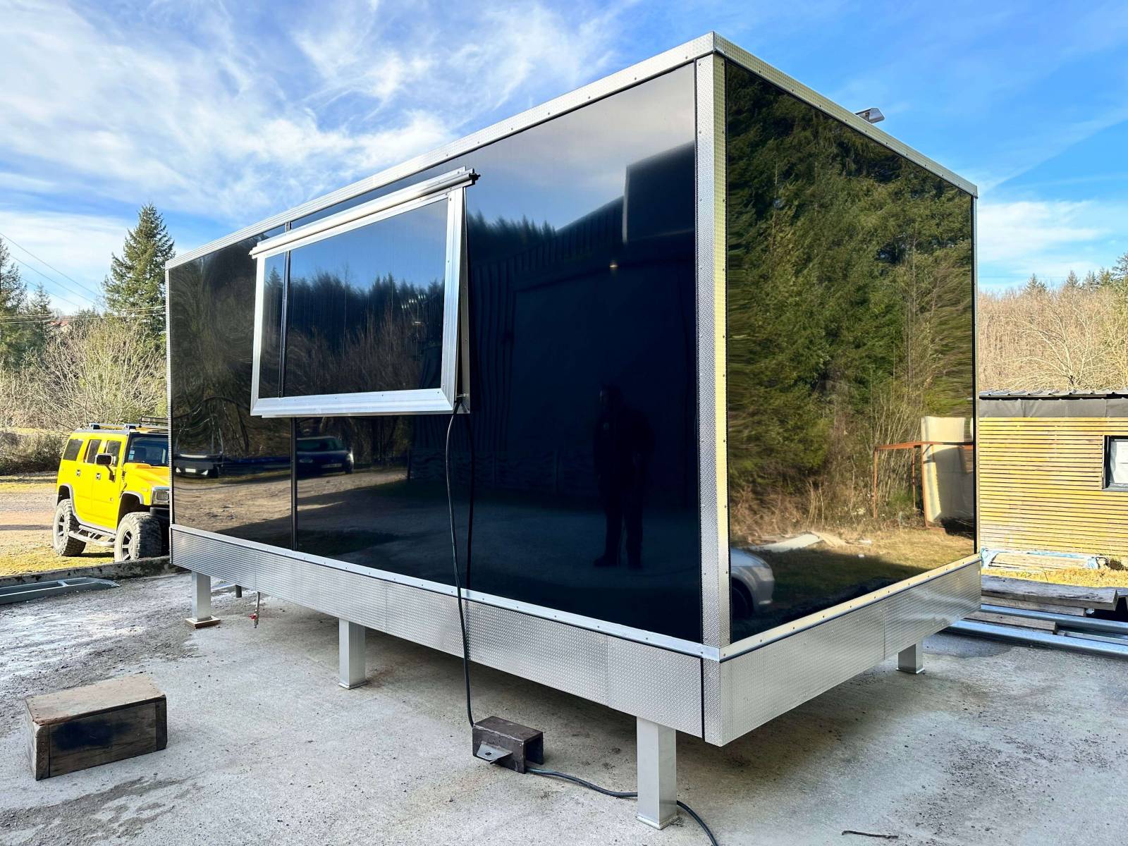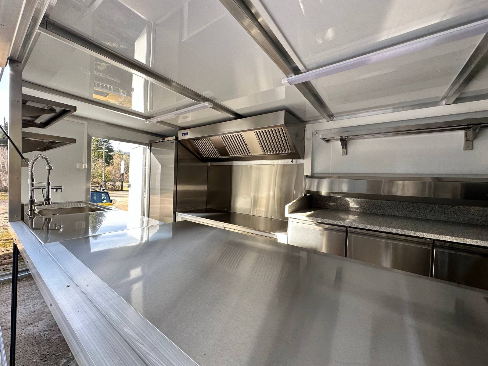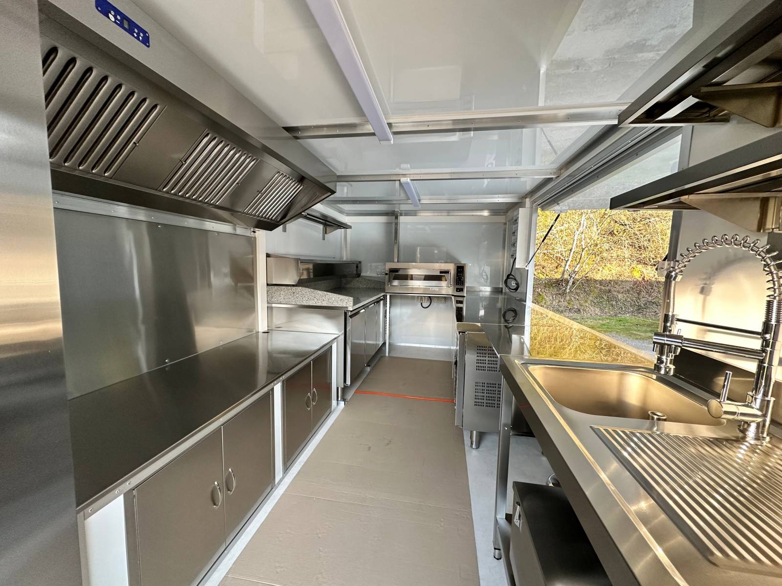 Nous vous présentons dans ce post, la conception et la fabrication d'un kiosque destiné à la pizza et à la restauration en général. Kiosque conçu, fabriqué et aménagé dans les ateliers du réseau Kiosque prime. Ce kiosque à pizza est destiné à la préparation et à la vente de produits snack et pizza en exterieur et en haute altitude. Les dimensions de la cellule du kiosque à pizza sont de Longueur 500cm x Largeur 230cm x Hauteur 200cm. L'ensemble des équipements CHR destinés à la cuisson de pizza, au stockage sec et froid et à la vente ont été installé et aménagé sur-mesure.