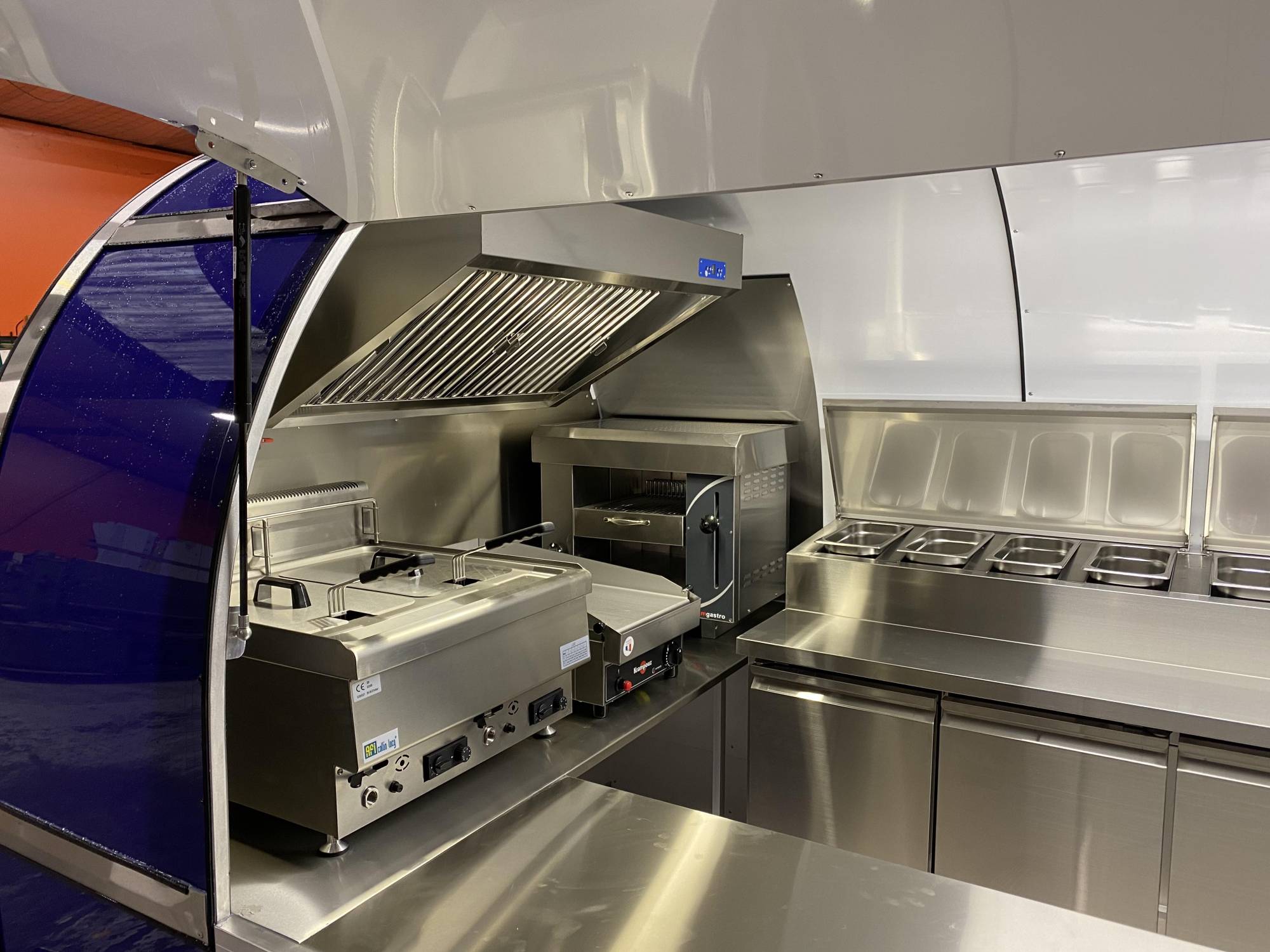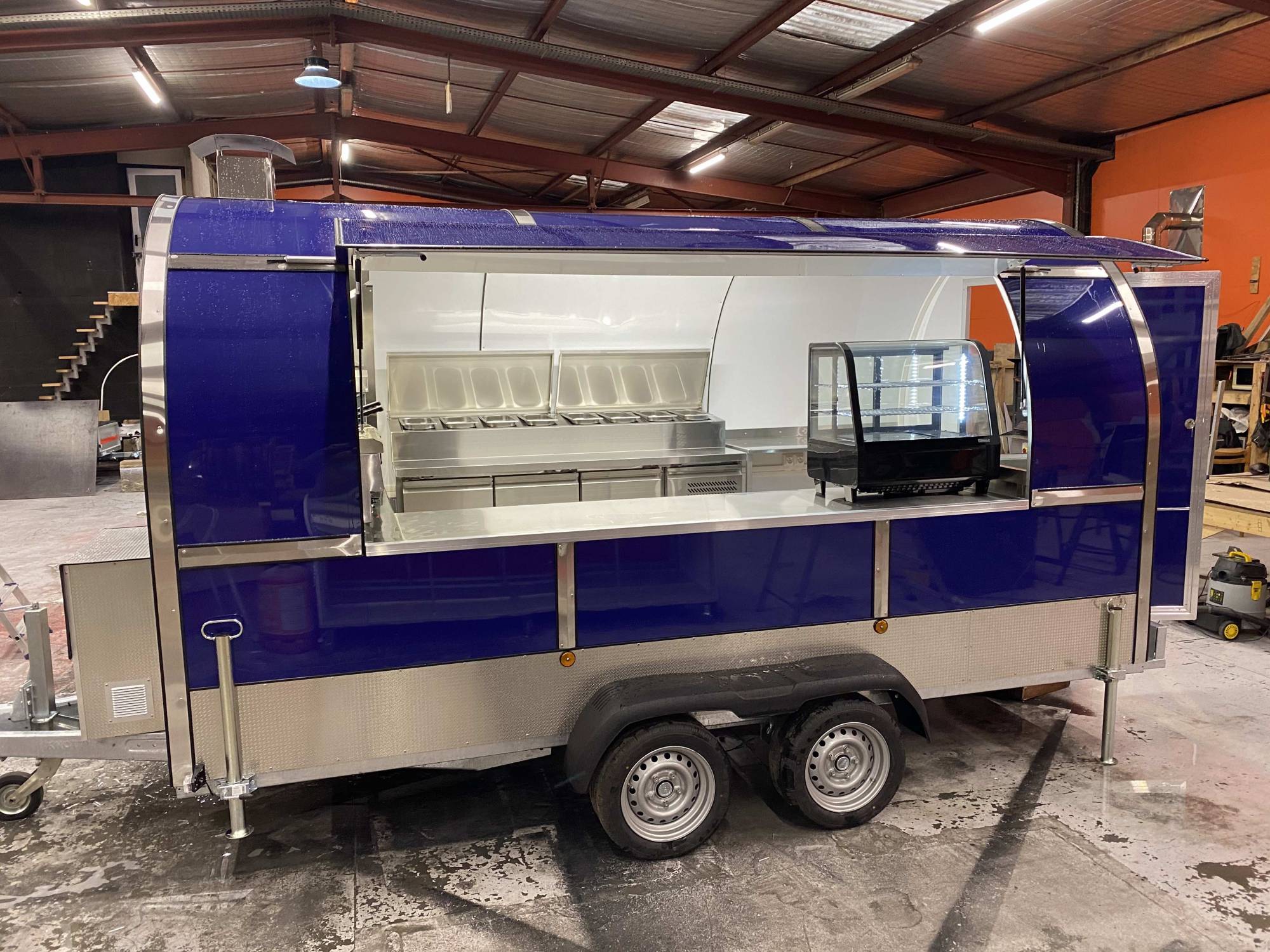 Notre chaîne de production, dans la Loire, est spécialisée dans la conception et la production de remorques Snack, kiosque snack, container snack, stand et chariot destinés aux commerces ambulants, restauration ambulante et au retail. Les produits qui sortent de cet atelier de production sont destinés à une clientèle professionnelle qui intervient dans le secteur de la restauration et du retail. Chaque remorque Kiosque prime est construite sur demande selon le cahier des charges du client (plusieurs types de châssis roulants, plusieurs dimensions cellules, divers aménagements d'équipements, plusieurs designs et couleurs).