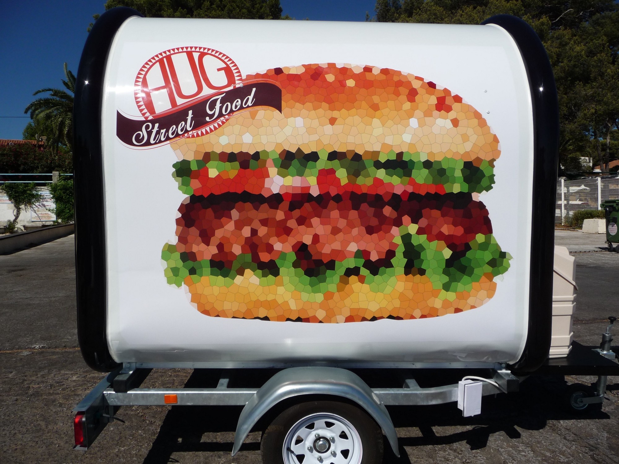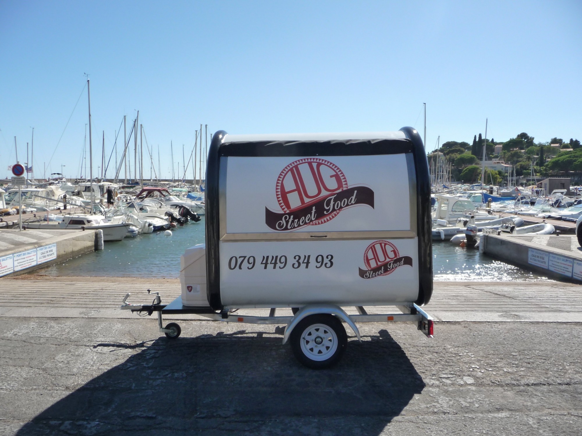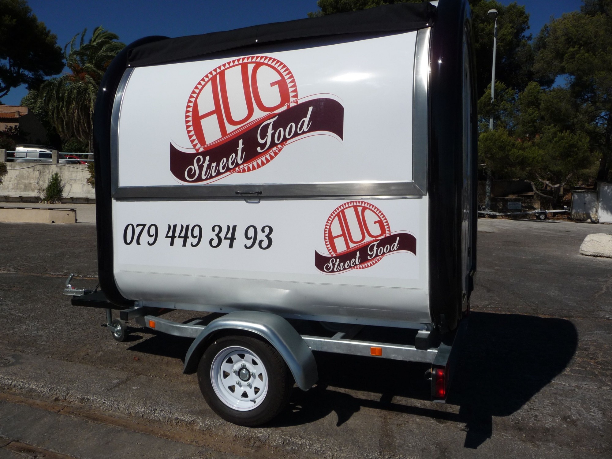 La fabrication d’une remorque food truck pour la Suisse. La société HUG, en Suisse, nous a contacté pour passer commande d'un mini Food truck design et ultra mobile pour la vente de burger et produits snack et plus particulièrement pour la préparation et la vente de produits crêpe et gaufre. L’idée étant de fabriquer un camion food truck, léger et mobile, aux normes alimentaires, qui sorte de l’ordinaire et qui reflète la cuisine haut de gamme du client. Cette remorque ambulante compacte est équipée d'une véritable cuisine mobile pour aller à la rencontre des clients et pratiquer de la vente ambulante avec un confort et un impact en terme de communication sans équivalent.