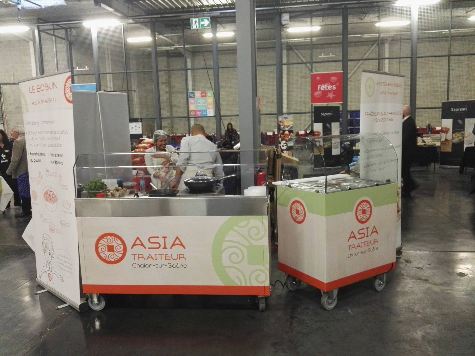 Conception, Réalisation, Fabrication et vente de 2 chariots ambulants réfrigérés, de type saladette, et d'un chariot ambulant sec type mobile kitchen pour une activité de traiteur pour les grandes surfaces CASINO. La société ASIA TRAITEUR, a Chalon sur Saone, nous a contacté, pour la conception, la réalisation sur-mesure et l'achat de deux chariots street food pour la vente de plats cuisinés. Avec ces chariots ambulants, le client propose une offre de plats asiatiques. Il positionne les 2 chariots ambulants dans les différents Casino en France.