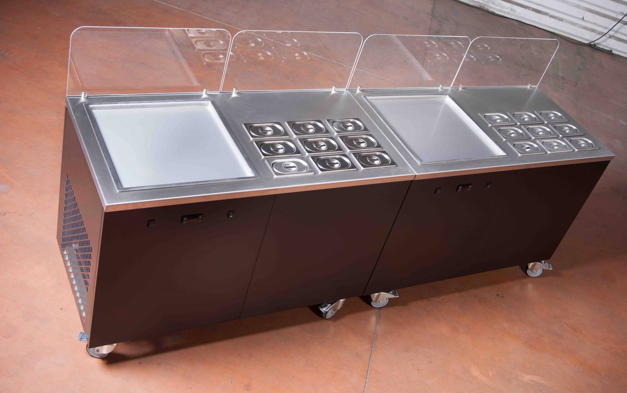 La machine Pattaya est parfaite si vous avez besoin d’un espace pour conserver vos fruits et toppings. Les 9 bacs gastro qui équipent le modèle Pattaya vous permettent de stocker les ingrédients que vous utiliserez pour vos roll, mais aussi les ustensiles, cup, spatules…