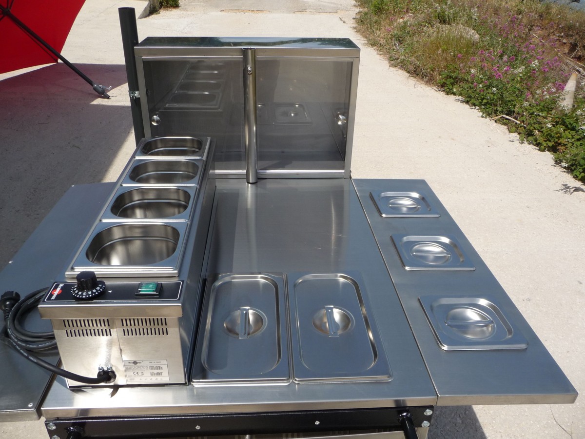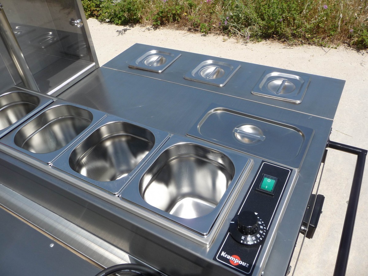 Tous nos chariots, stands et kiosque ambulants sont conçus selon votre cahier des charges. Tous les produits Kiosque prime sont modulables et peuvent être combinés les uns avec les autres. Plusieurs modèles sont disponibles pour le maintien au chaud, stockage froid positif, stockage froid négatif, stockage sec, mais aussi pour la préparation, promotion et la vente. Toutes nos versions de chariots sont personnalisables. C’est un moyen efficace pour faire le buzz et rentabiliser votre activité rapidement à moindre coût. Robuste et très pratique, les chariots snack sont fabriqués dans les usines de Kiosque prime en France.