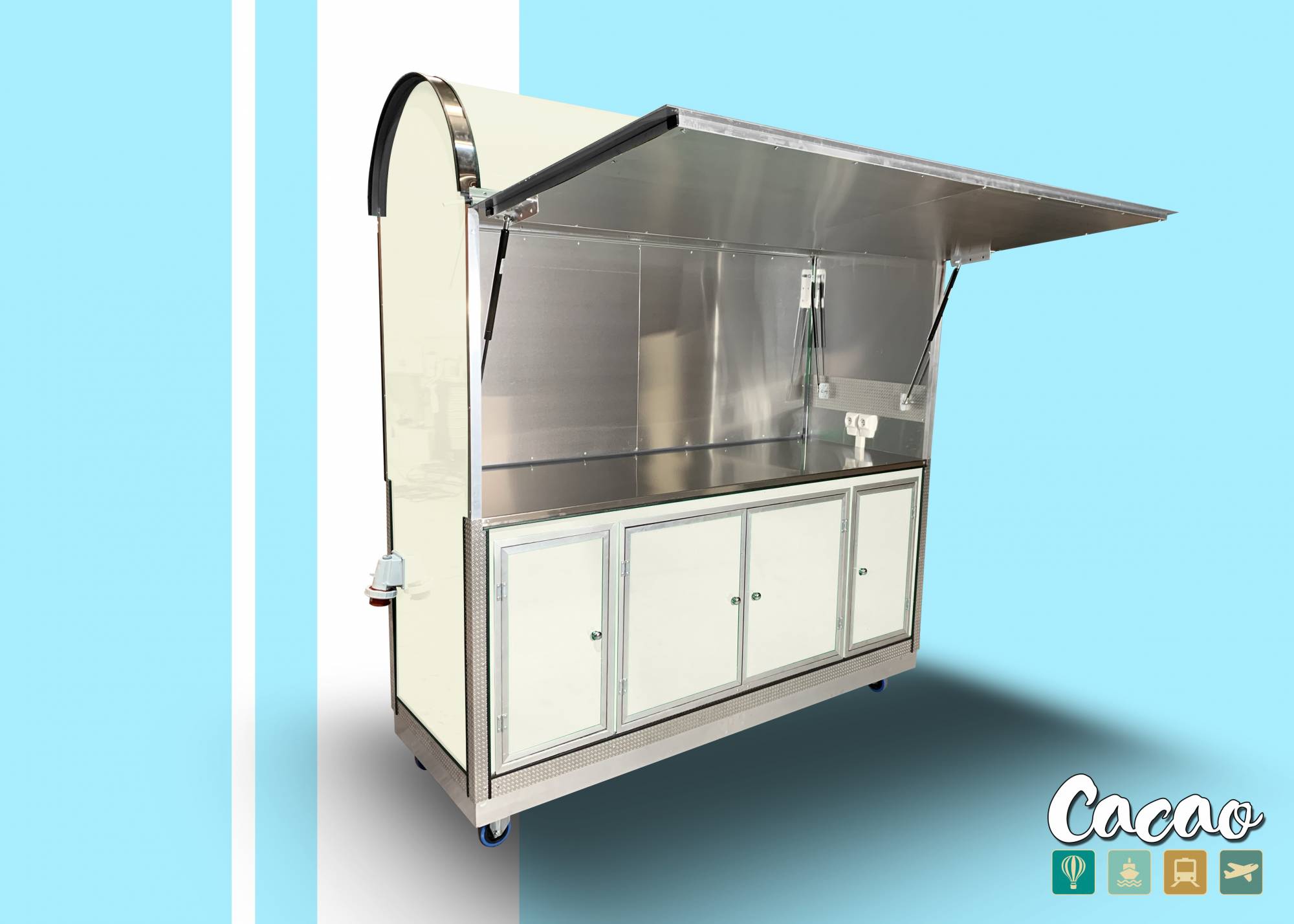 Le kiosque ambulant CACAO est conçu sur les bases d'un design smart aux lignes tout en rondeur. Il s'intègre facilement en environnement extérieur comme intérieur. La conception de ce petit kiosque ambulant est étudiée pour mettre en avant la communication de votre activité et de votre entreprise sur le lieu de vente.