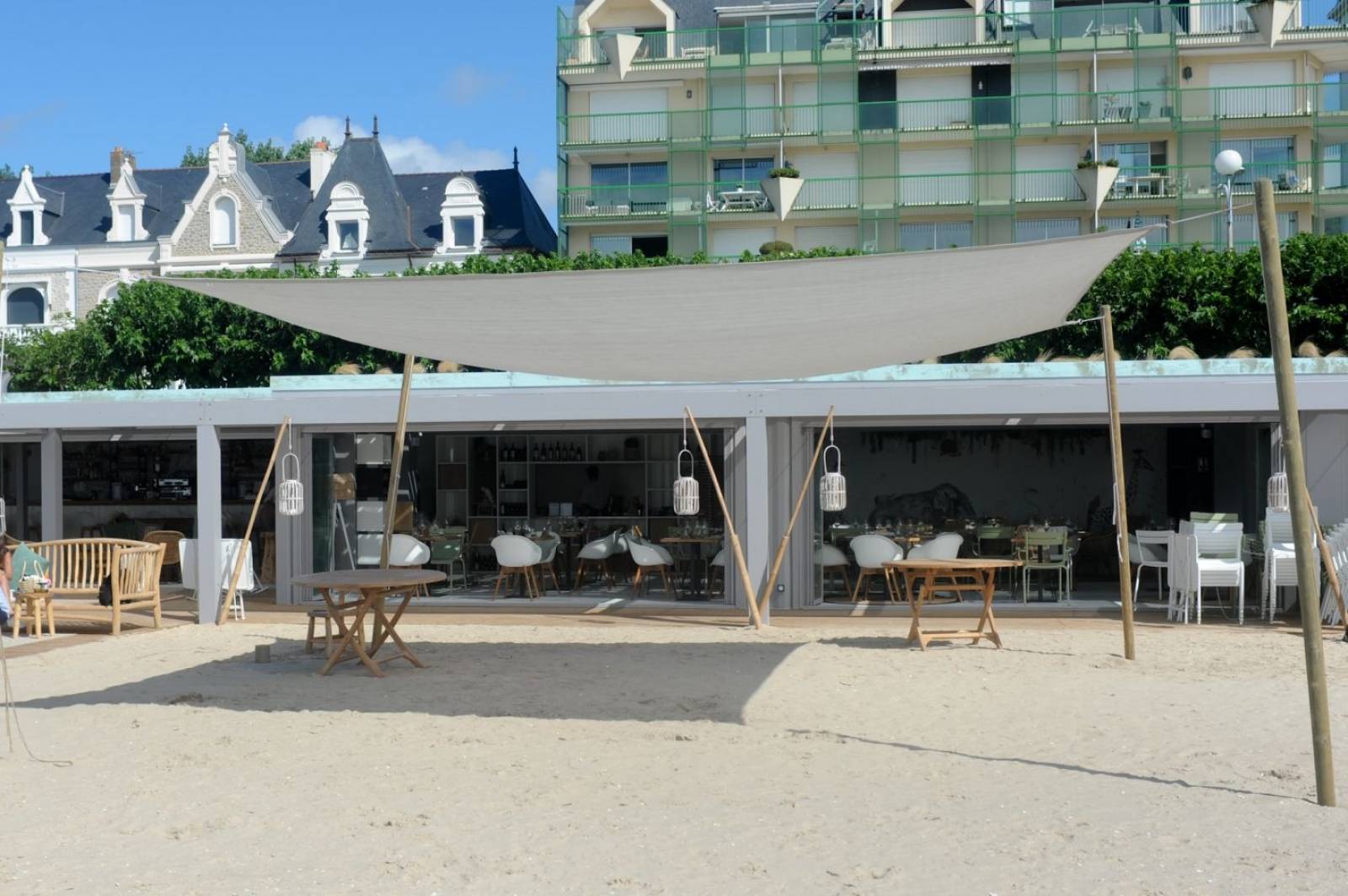 L’activité de restaurants de plage démontables est en pleine expansion et grâce à notre usine, nous sommes à la pointe dans ce domaine. En assemblant plusieurs containers de 20 ou 40 pieds, nous arrivons à recréer un ensemble homogène, design, efficace, facile à monter et à démonter. Ouvertures, portes, passage boisson, retour vaisselle, salle de restaurant, cuisine complète équipée ou non, stockage sec, froid positif et/ou négatif, tout est possible sans oublier les toilettes, l’accès PMR, l’accueil mais aussi la toiture, l’étanchéité, les finitions intérieures et extérieures comme le bardage, et les terrasses… Par exemple le restaurant sur la plage démontable de La Baule est composé de 14 containers : 9 x 40 pieds + 5 x 20 pieds pour une surface de 320 m².