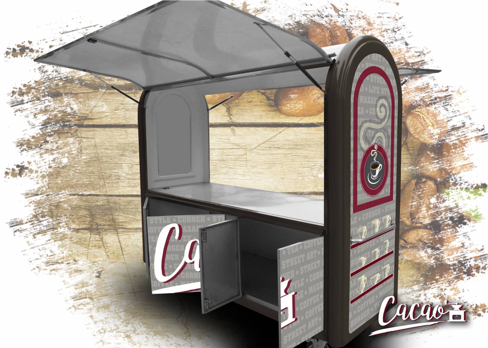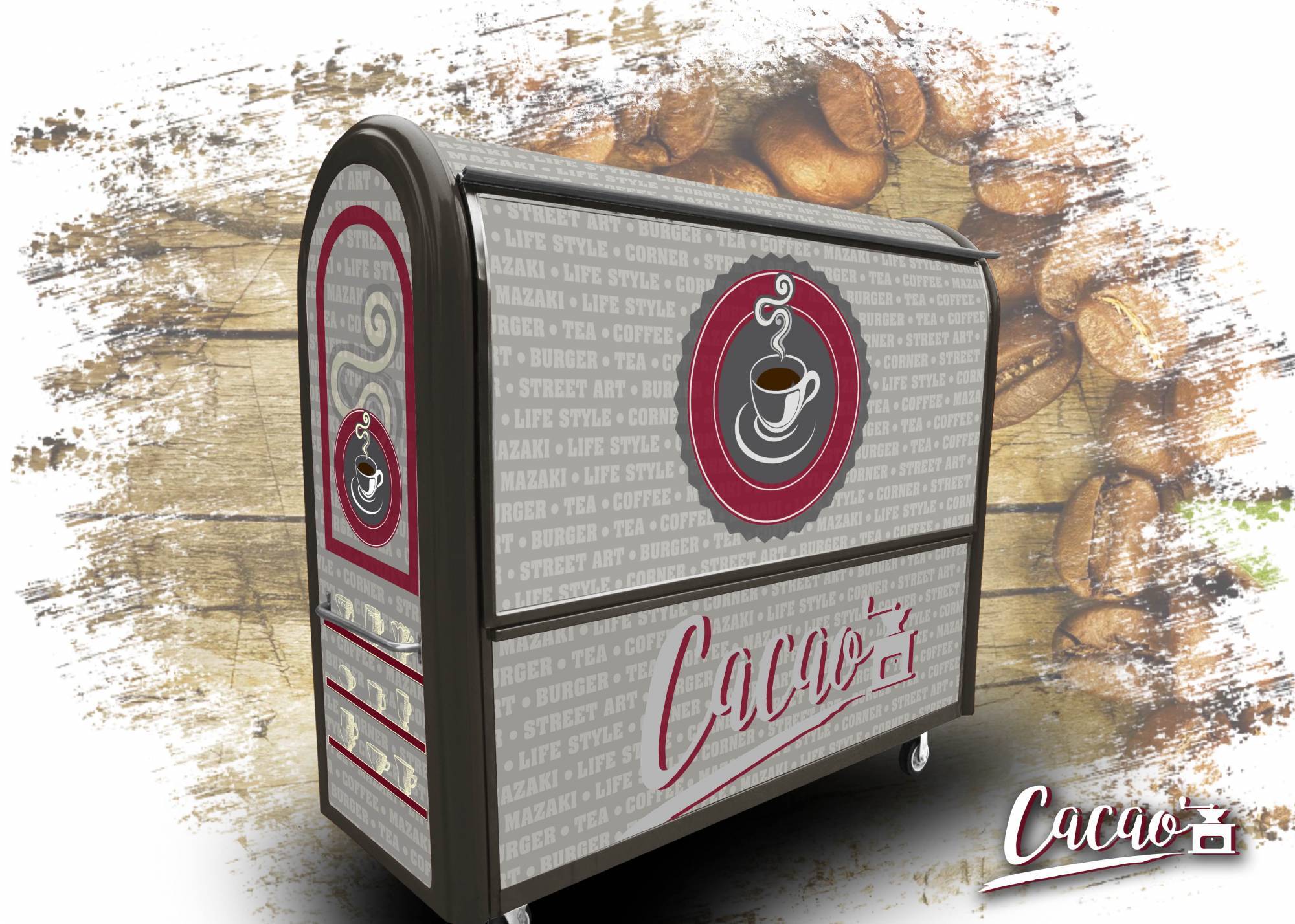 - La dernière phase comprend la création graphique, la production et la pose du covering sur le chariot Street Food.