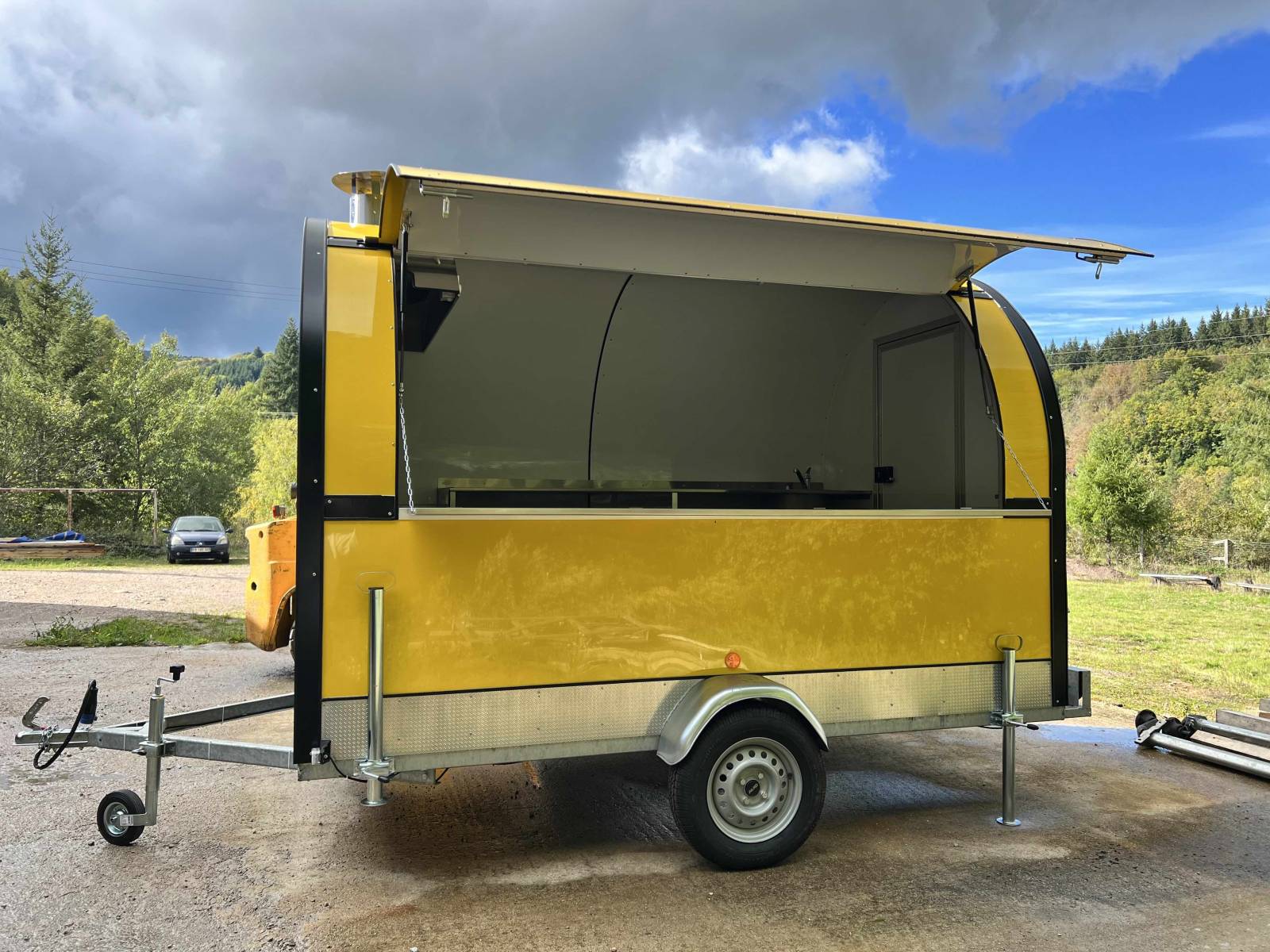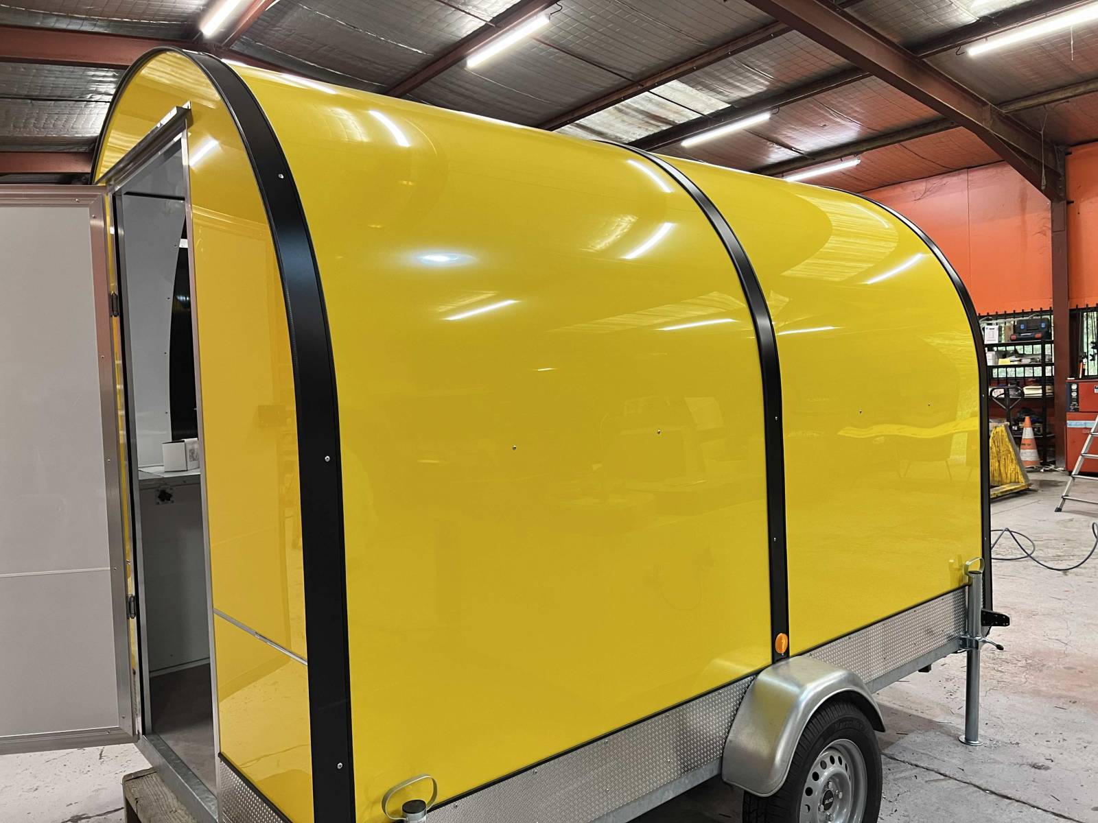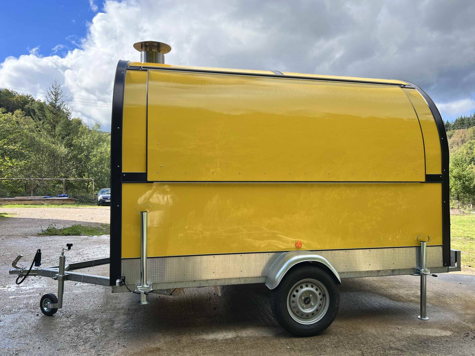 Cette remorque food truck est destinée à la location. En effet, de plus en plus de clients désirent lancer leur activité de restauration mobile en foodtruck. Mais les délais de production sont parfois un peu long. Actuellement prévoir 6 mois de délais de production.