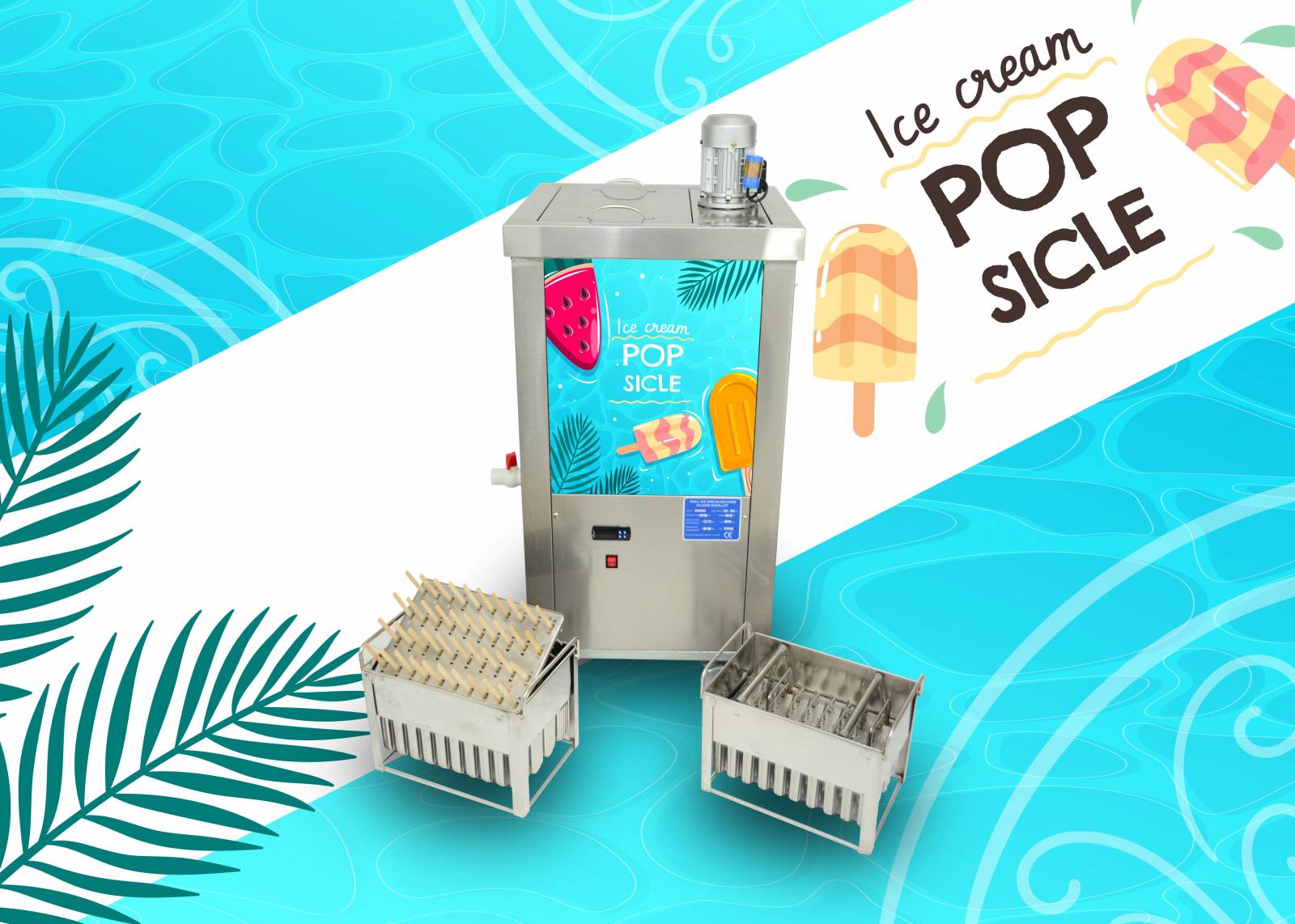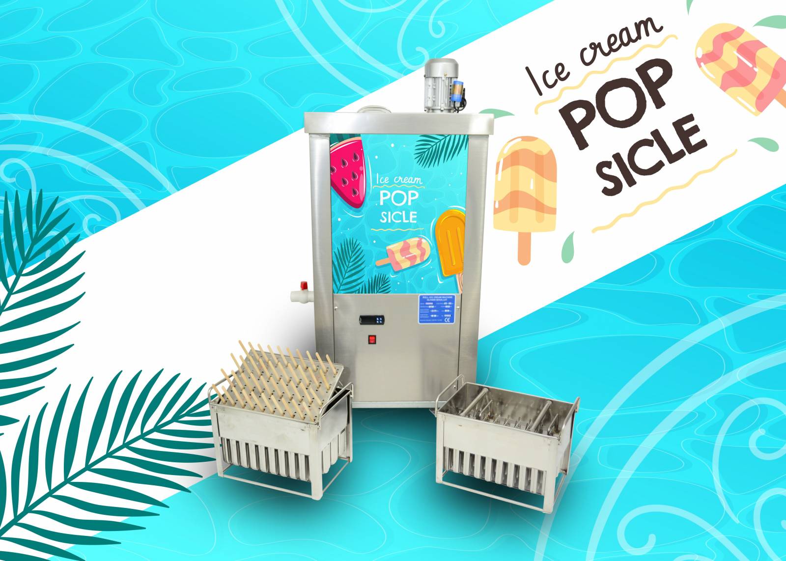 Laissez parler votre créativité en proposant glace à la crème et autres sorbet sur bâtonnets. Grâce aux machines à popsicle la création de bâtonnets glacés et de gâteaux glacés est ludique à souhait. Chaque machine est livrée avec son moule d’origine et nous proposons également plusieurs autres types de moule à glace en bâton. Les machines fonctionnent avec un mélange Glycol + Eau. Fluide Réfrigérant: R448A et 513 (pour la conservation). Kiosque prime vous propose également des options spécifiques comme par exemple : la livraison du produit à votre adresse et cela dans tous les pays, tous les mélanges et autres réfrigérants, le packaging et les outils nécessaires à la vente des glaces en bâton,