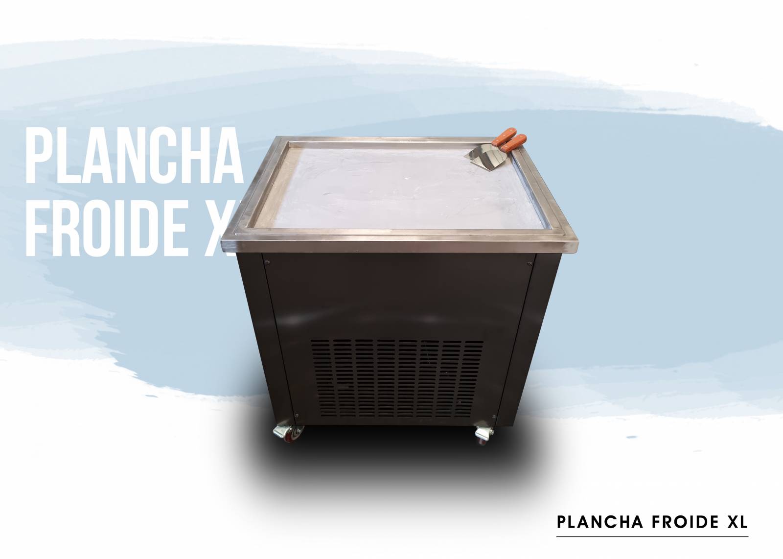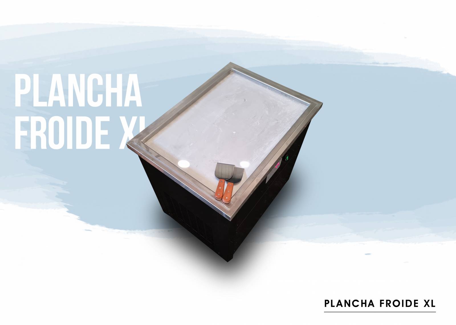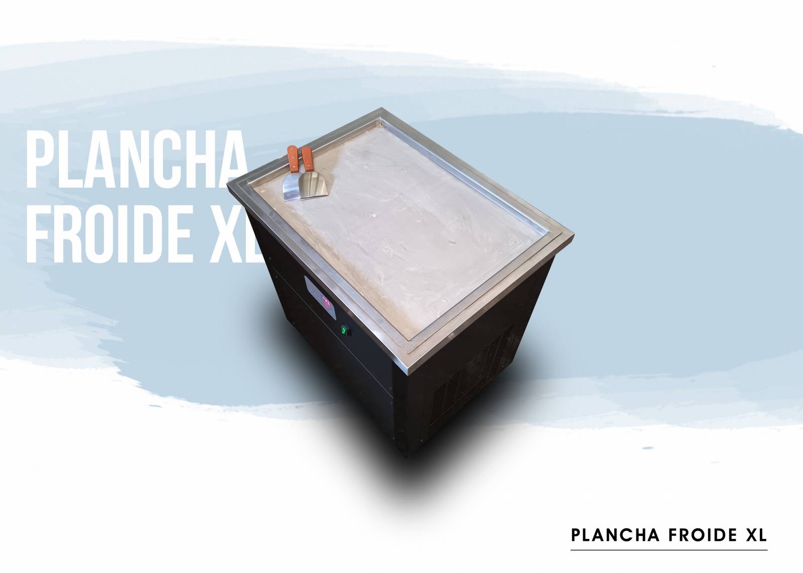 Un meuble équipé d’une très grande plaque froide et qui givre à une température proche de -30°C ! C’est l’outil préféré des glaciers et autres artisans du froid. La plancha froide XL vous permet de réaliser très rapidement des glaces Thai pour de nombreux clients sans perdre de temps. Vous pouvez aussi faire de la sculpture sur glace pour agrémenter des apéro VIP, à vous de voir :)