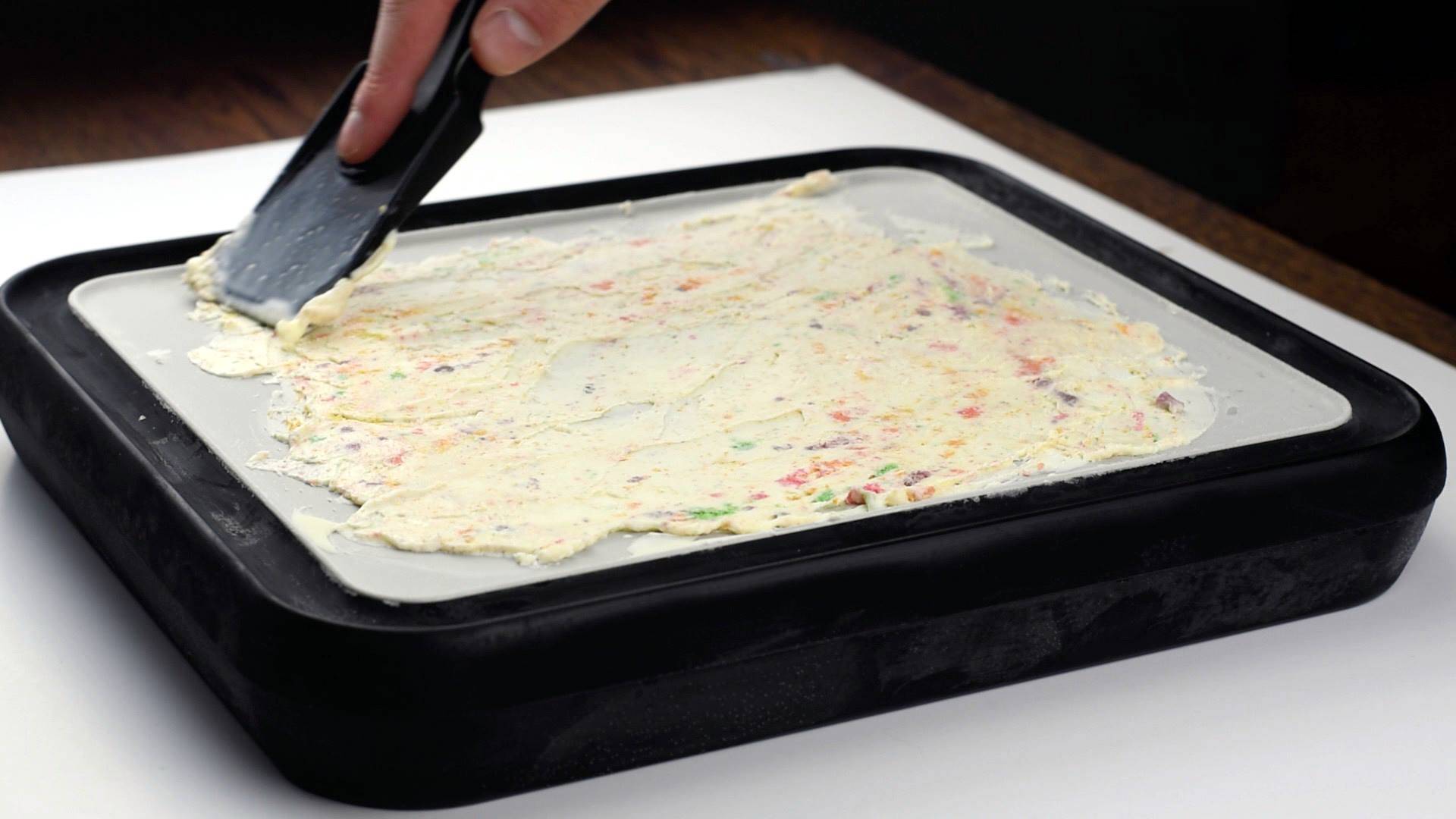 La préparation, au contact de la surface réfrigérée, gèle rapidement, est peut ainsi être transformé en rouleaux givrés. Toute la subtilité consiste à former d'élégantes "feuilles" et à les enrouler avant de les parsemer de toppings variés. En bouche, la crème glacée Ice-Cream Roll est d’une onctuosité et d’une fraîcheur surprenante ! Vous êtes prêt ? Alors lancez-vous !