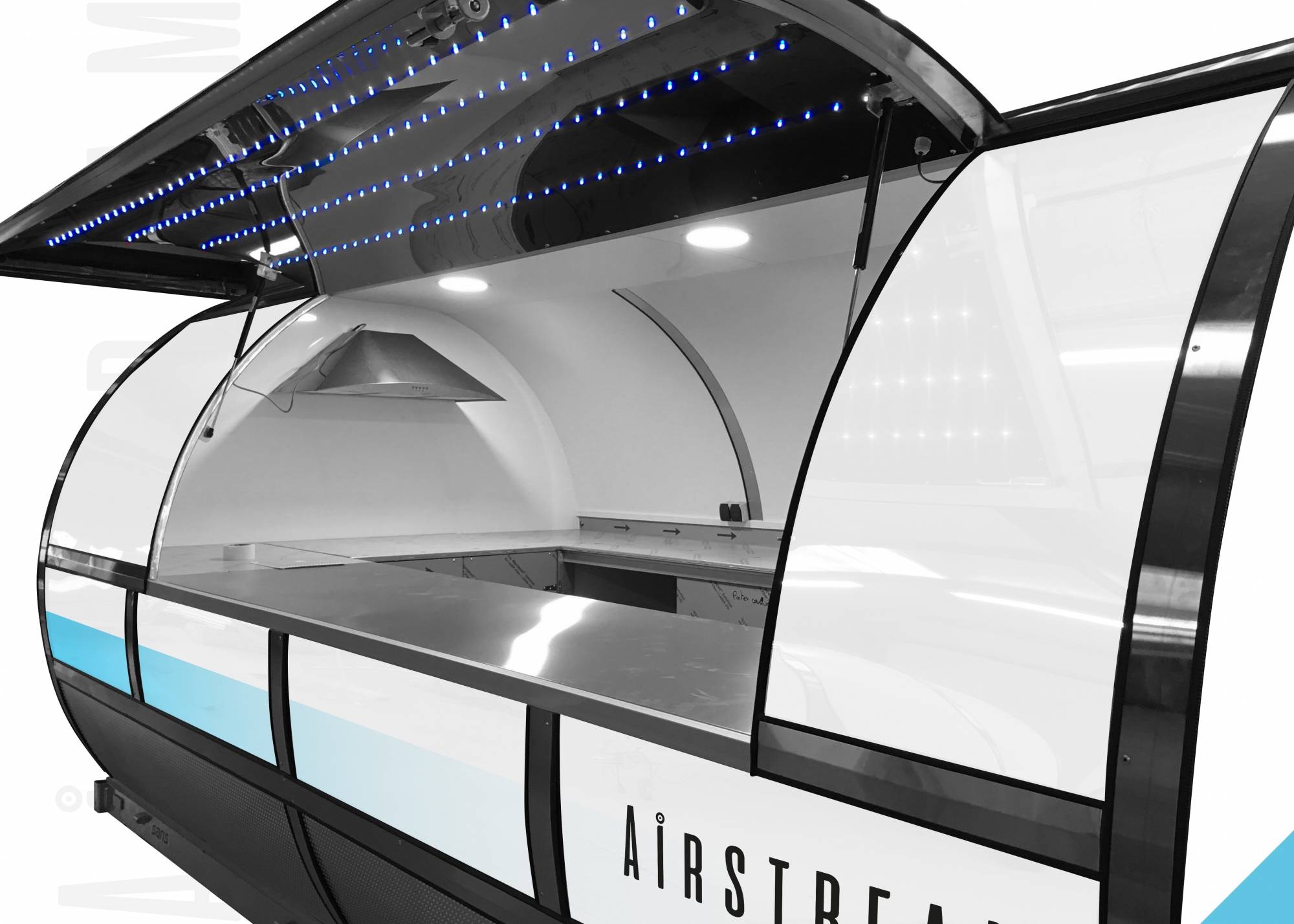 Depuis plus de 80 ans, ces caravanes, qui incarnent la liberté et l’art culinaire, sillonnent les routes à travers le globe. Le style Airstream (déposé par airstream-france) est une roulotte unique en son genre (Cette remorque snack américaine en aluminium est emblématique. Cette remorque ambulante au look typiquement américain fera sensation lors de vos déplacements et boostera vos ventes. La remorque Food truck R-STREAM est une remorque magasin qui rend hommage au design original Américain, elle est adaptée pour les activités de street food et street vending. Cette remorque américaine est obligatoirement équipée d’un châssis double essieu freiné pour une meilleur stabilité et une capacité de charge maximale.