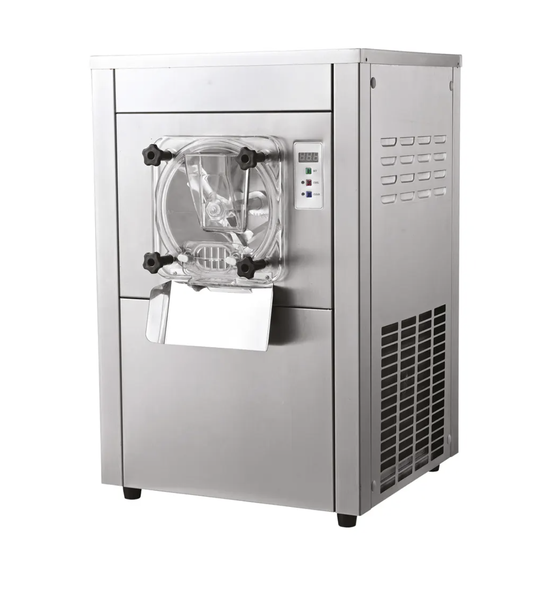Les turbines à glace équipées d’un système de refroidissement par air sont plus abordables, mais les machines peuvent avoir du mal à maintenir des températures constantes dans des environnements chauds. Les systèmes de refroidissement par eau sont plus efficaces pour maintenir des températures stables, mais ils nécessitent une installation spéciale et une source d’eau. Choisissez le système de refroidissement qui convient le mieux à votre emplacement et à vos besoins en matière de température de production de crème glacée.