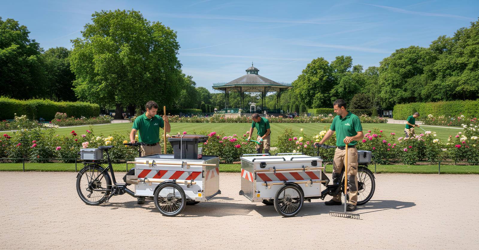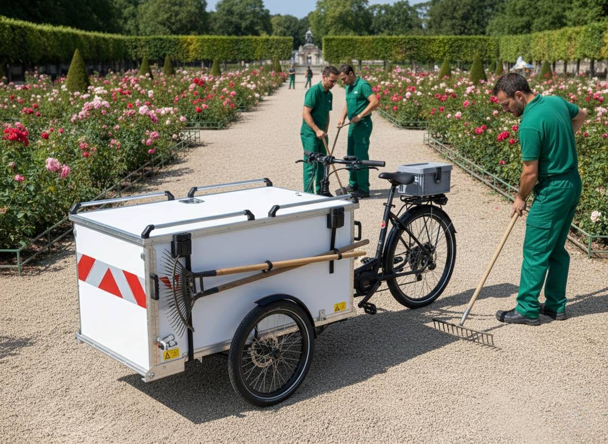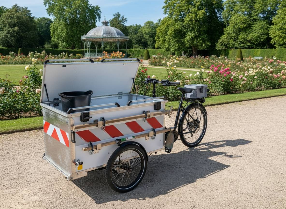 Le triporteur Parcs et Jardins Kiosque Prime s'impose comme un outil de travail moderne pour les collectivités, services municipaux et entreprises spécialisées dans l'entretien des espaces verts. Son format et sa conception permettent des interventions fluides dans les parcs urbains, jardins publics zones piétonnes, zones réglementées, y compris dans des espaces où les véhicules utilitaires traditionnels sont peu adaptés.