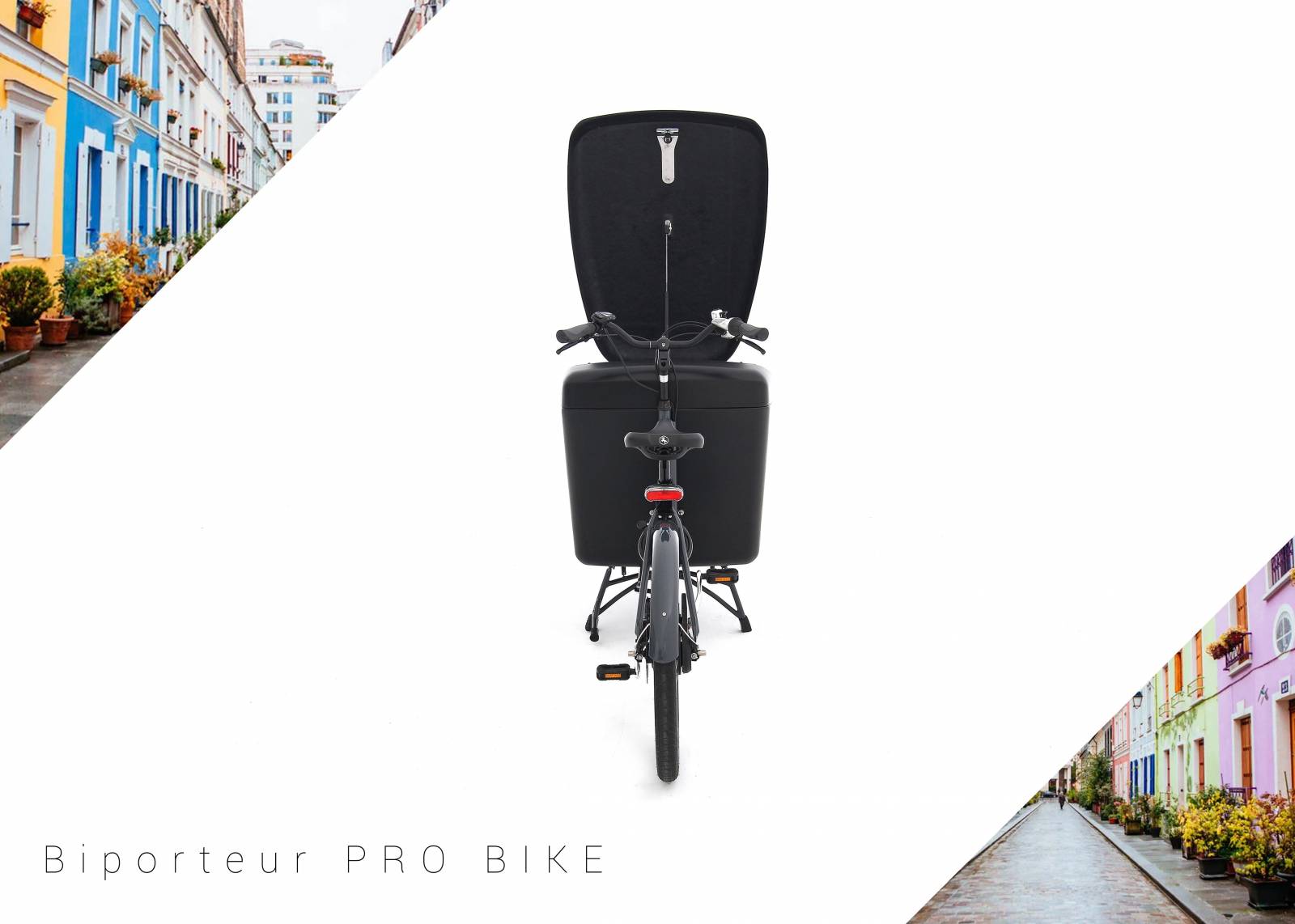 Ne soyez plus jamais coincé dans un embouteillage, contribuez à la protection et à la sauvegarde de notre environnement, arrivez très vite et facilement à destination avec le Biporteur Pro Bike. Ce vélo transporteur destiné aux professionnels, au design étroit, se conduit comme un vélo classique, permettant ainsi un déplacement fluide au sein de la circulation urbaine en centre-ville comme en périphérie.