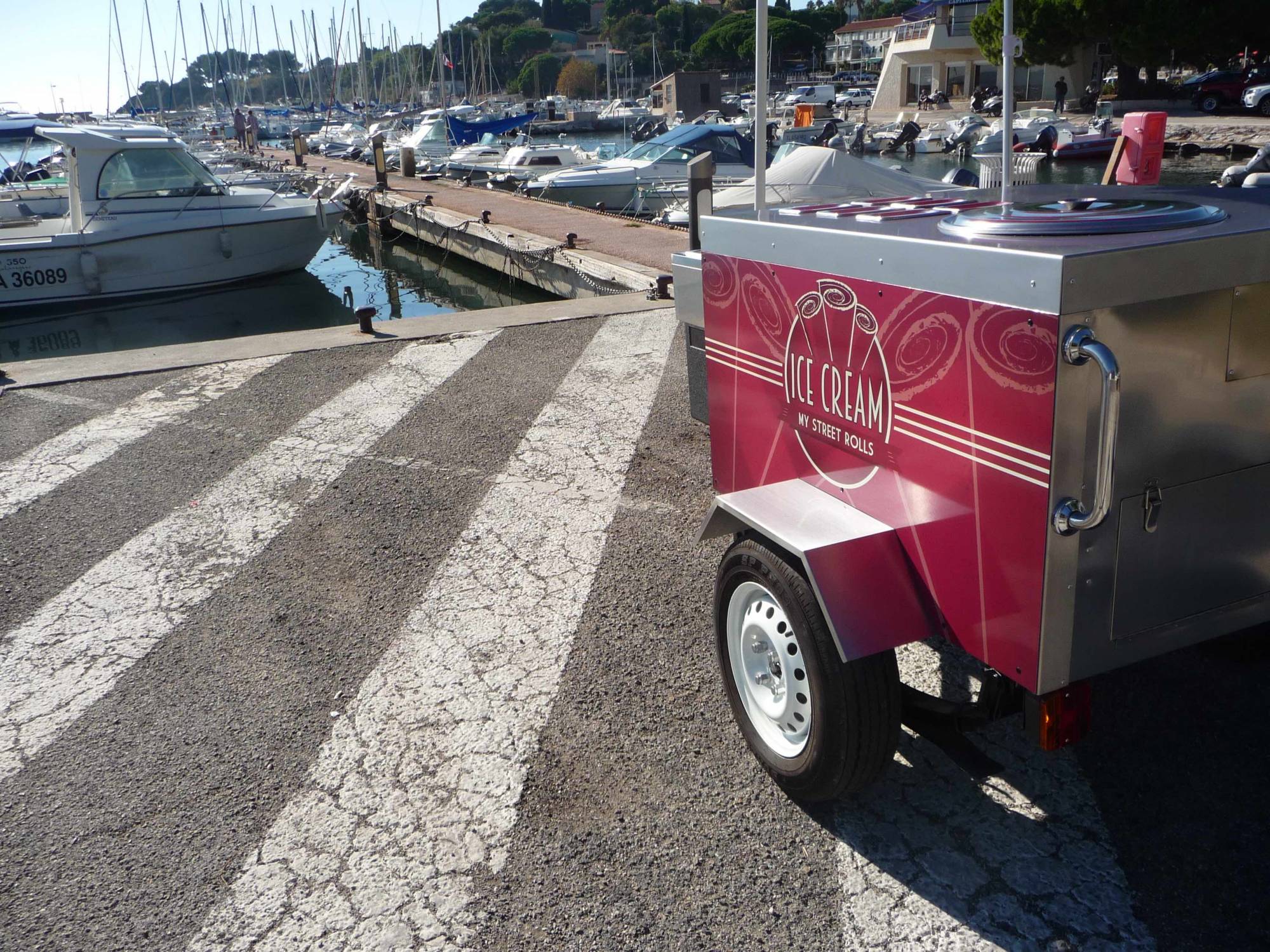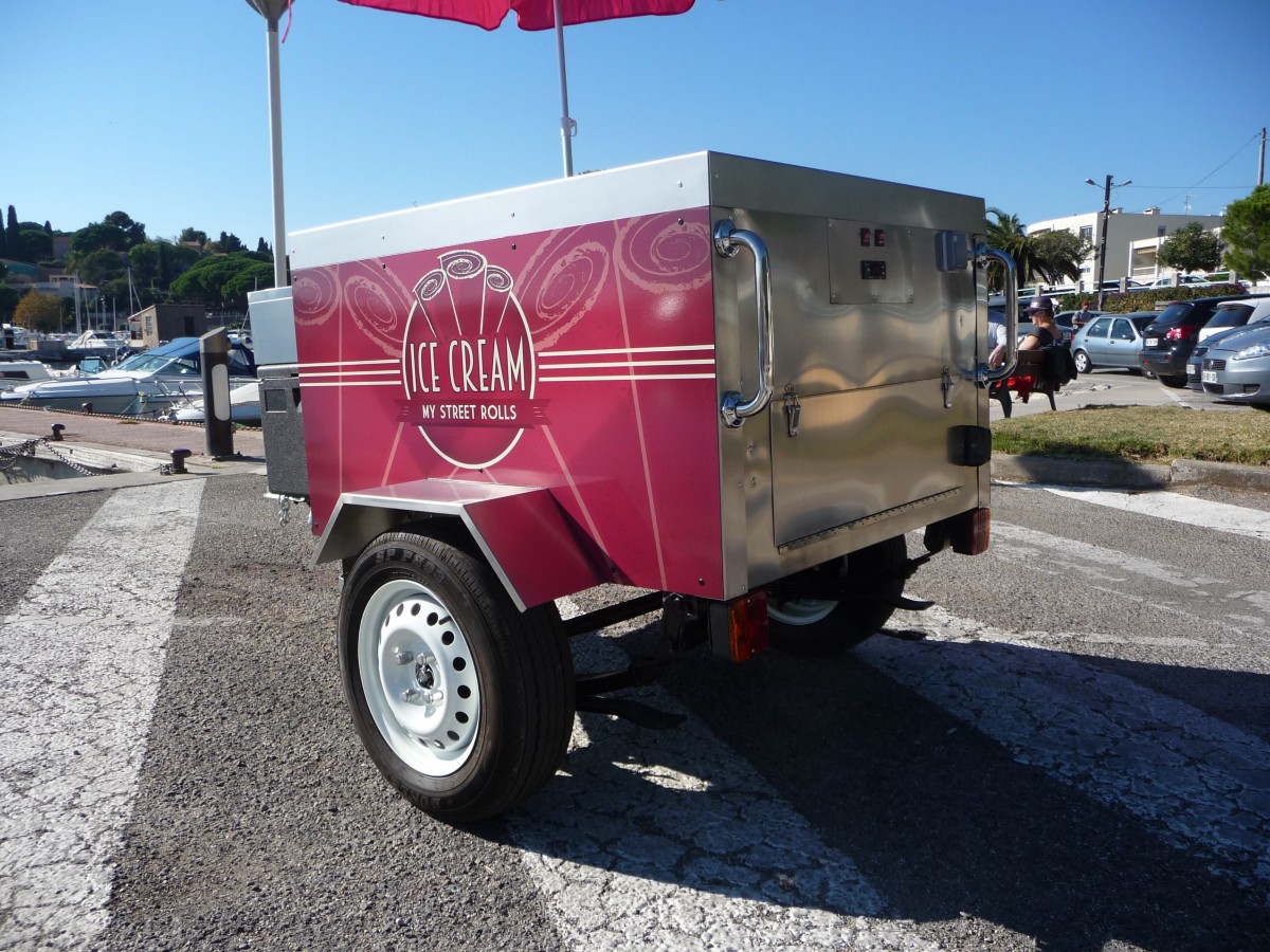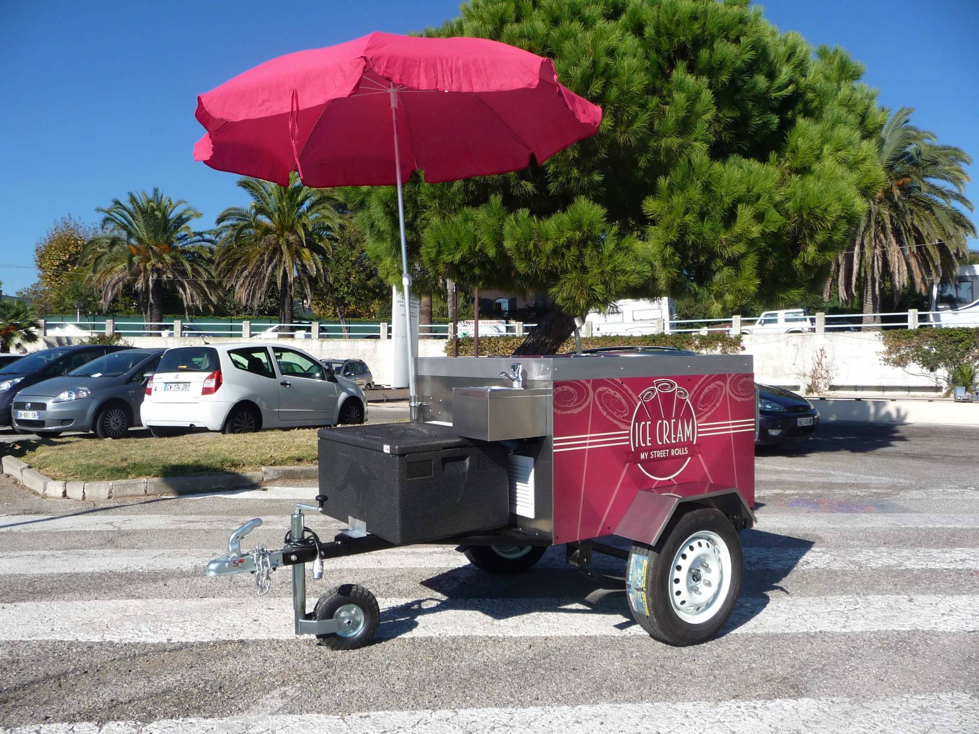 C'est mobile, design, simple, efficace et spécialement conçu pour la préparation de Ice-Cream Roll. Le chariot ICE-CREAM ROLL est tractable. Équipé d'une machine avec plaque givrante, d'un châssis roulant et d'un timon pour vous déplacer à pied comme avec votre véhicule. Parfait pour la mise en avant de votre marque, pour la préparation et la vente de vos créations glacées. Utile en intérieur comme en extérieur, ce chariot est conçu spécialement pour vous. Une personnalisation et un design unique pour une identité plus forte. Boostez votre visibilité sur les marchés, les salons, les foires, dans la rue, les plages, devant votre enseigne, dans votre restaurant... Versez votre crème glacée sur la plaque givrante et ajoutez ce qui vous semble bon ! Fruits, légumes, biscuits, chocolats, gâteaux, bonbons, nappages, épices, toppings, salé, sucré... Une animation qui sort du commun et une mise en bouche juste délicieuse ! L'Ice-Cream Roll est bien plus qu'une tendance, c'est un nouveau mode de fabrication et de consommation de produits glacés.